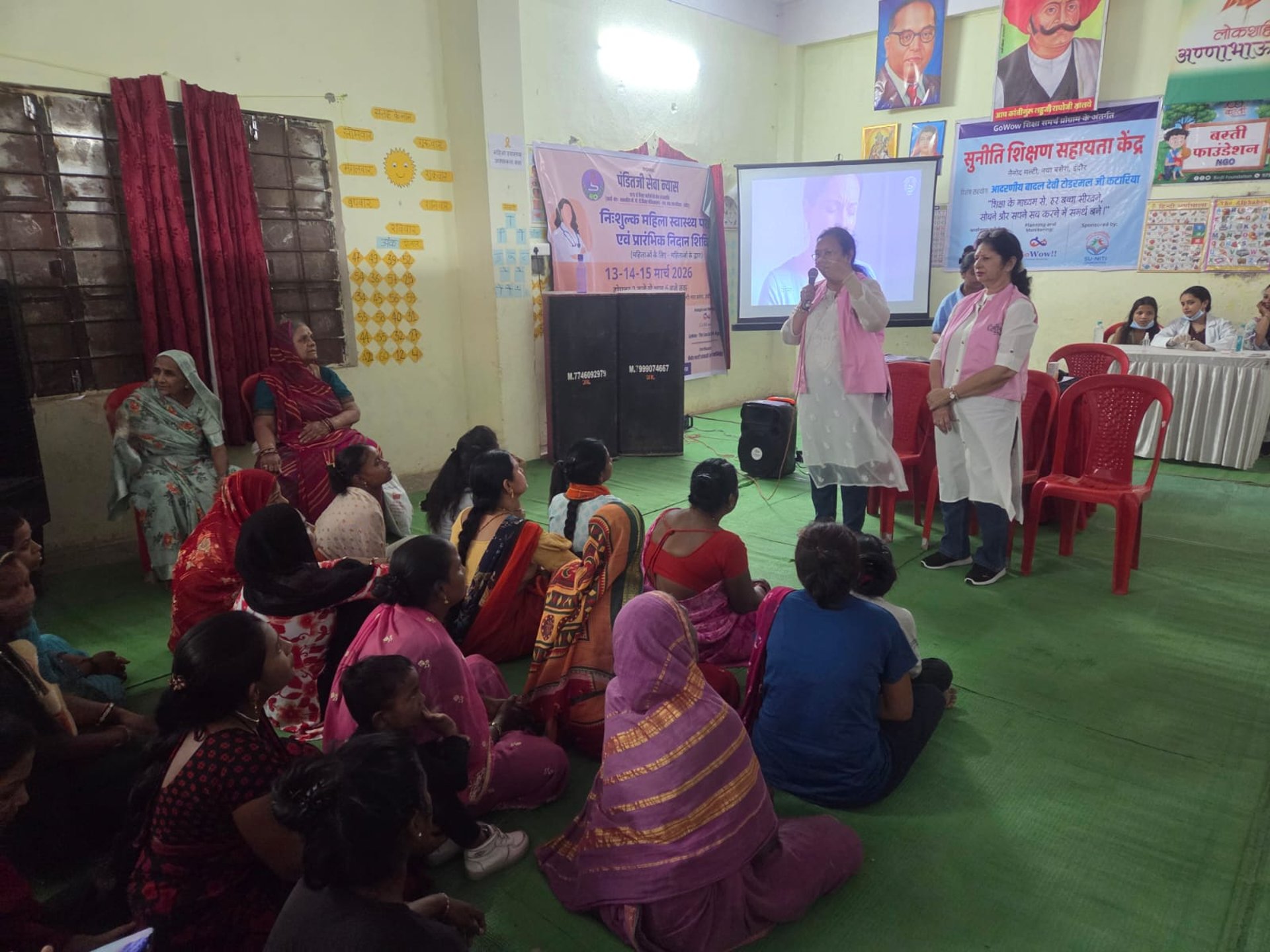एक बहुत ही सूचनाप्रद वीडियो पंडित जी सेवा न्यास द्वारा बड़ी स्क्रीन पर बस्ती की महिलाओं को दिखाया गया, जिसमें ब्रेस्ट और सर्वाइकल कैंसर के प्रारंभिक लक्षण, स्वयं स्तन परीक्षण कैसे करना है, इलाज आदि के बारे में विस्तृत जानकारी, सरल भाषा में दी गई।इसके पश्चात एम. वाय अस्पताल की ऑंकोलॉजिस्ट और संगिनी की कोऑर्डिनेटर अनुराधा सक्सेना द्वारा महिलाओं को अपने टेस्ट व स्क्रीनिंग करवाने के लिए प्रेरित किया गया।