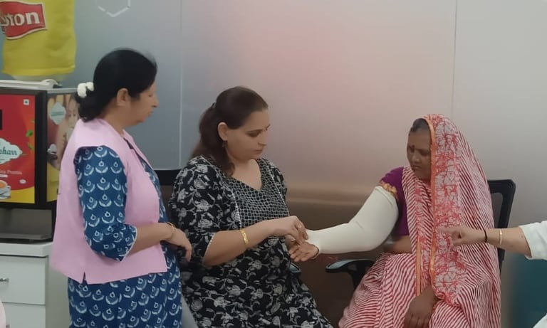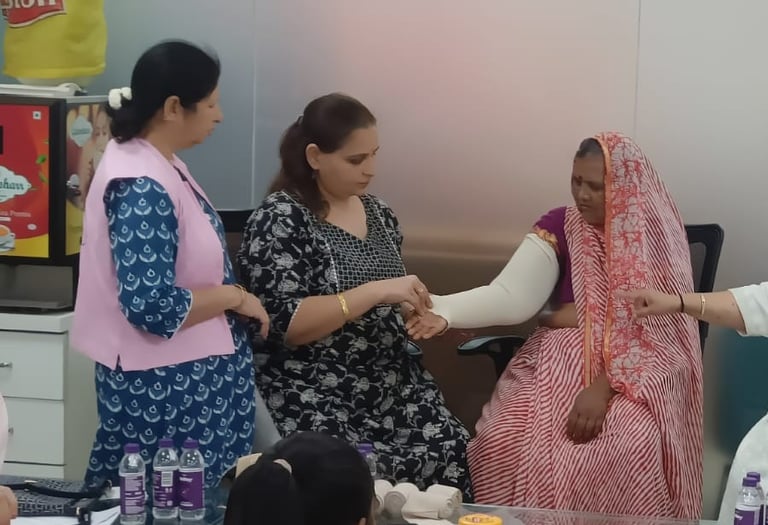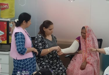 We focus on empowering breast cancer survivors to manage lymphedema effectively and improve their quality of life. Lymphedema, a common post-surgical condition, can cause swelling and discomfort in the arm, but with the right care and awareness, it can be controlled. Our Lymphedema Instructor, Mrs. Rupika Sanyal conducts regular sessions demonstrating manual lymphatic drainage massage, bandaging, and simple exercises that help reduce swelling and maintain lymph flow. We also educate patients about skin care, posture, and preventive measures to minimize complications. Through continuous guidance and emotional support, Sangini helps survivors manage lymphedema with confidence and live active, fulfilling lives.